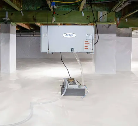 Install a crawlspace rated dehumidifier in a central location for even airflow. This unit removes excess moisture from the air, reduces mold risk, and improves home comfort. A professional setup ensures the right size and performance for your crawlspace needs.